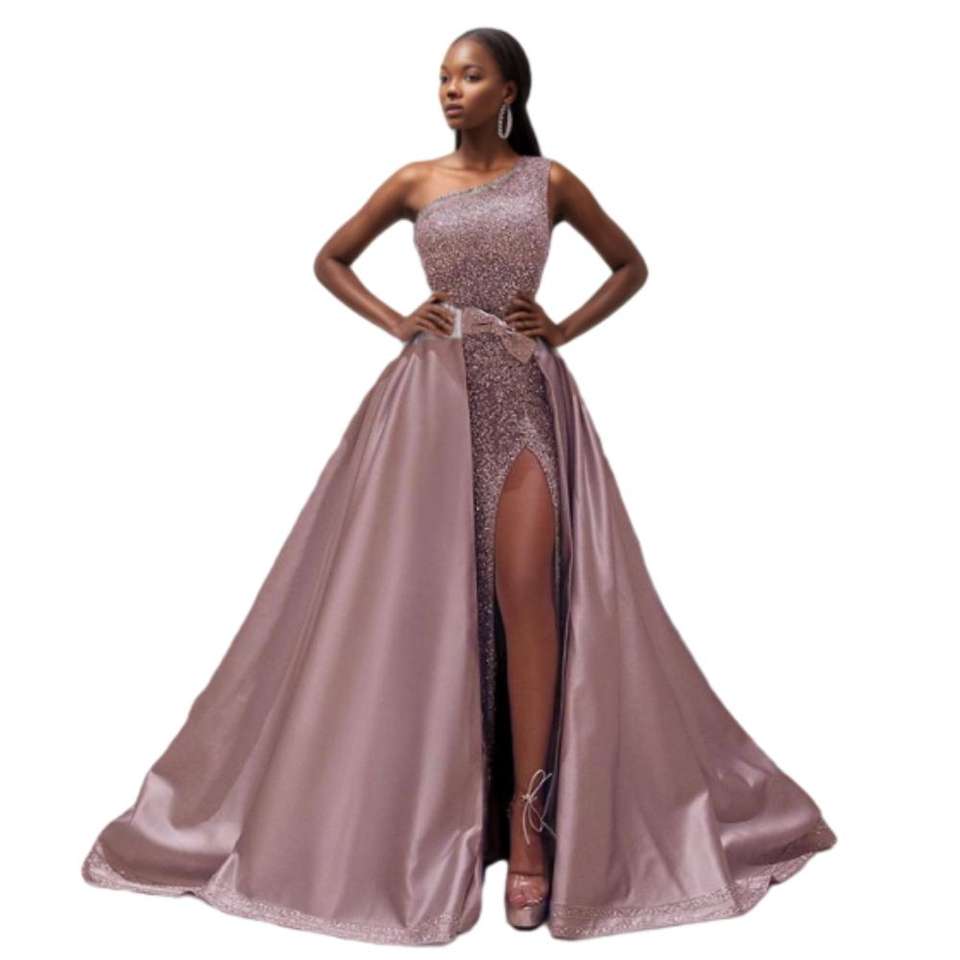 Vestido de Noche de Dos Piezas con Hombro Descubierto, Lazo Asimétrico, Largo hasta el Suelo, Corte en A, de Poliéster, para Fiesta