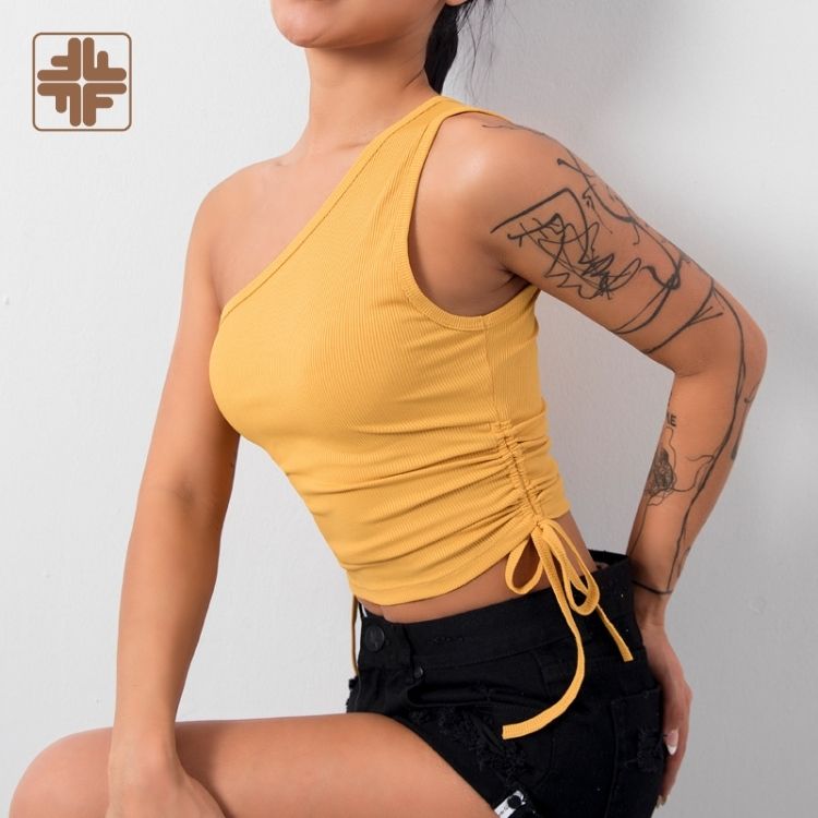 Product Name:one shoulder buttery soft women flat fitness yoga set tank top