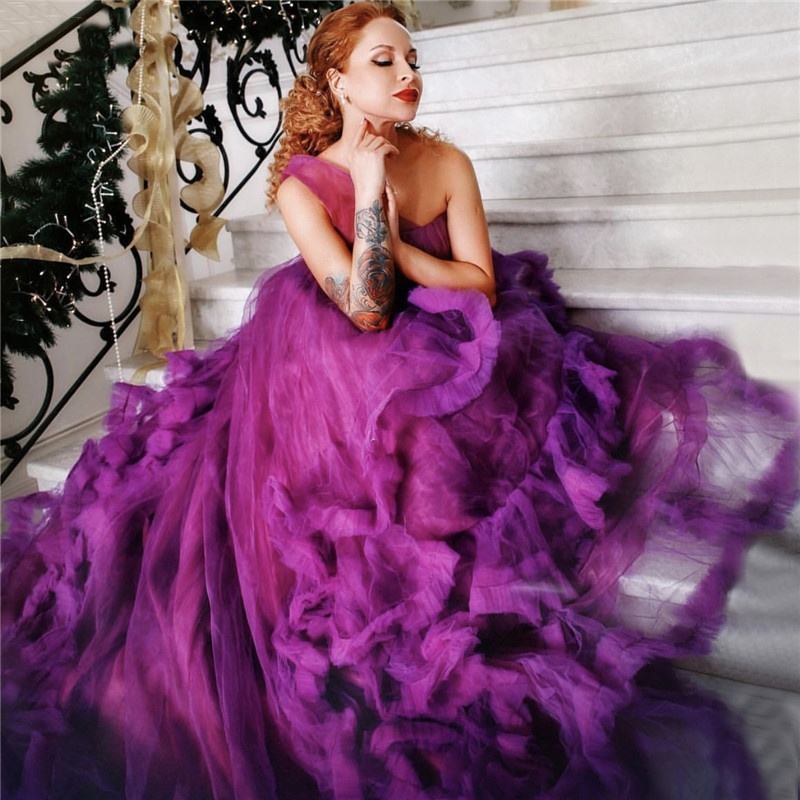 Vestido de Novia de Gala Largo con un Hombro Descubierto, Elegante y Sofisticado, Color Morado