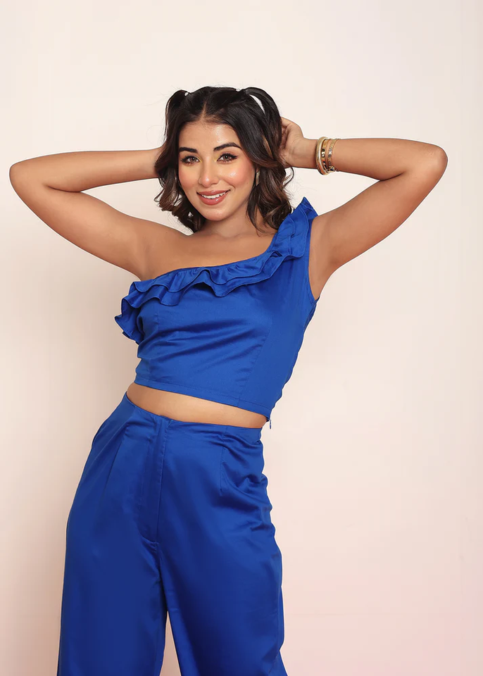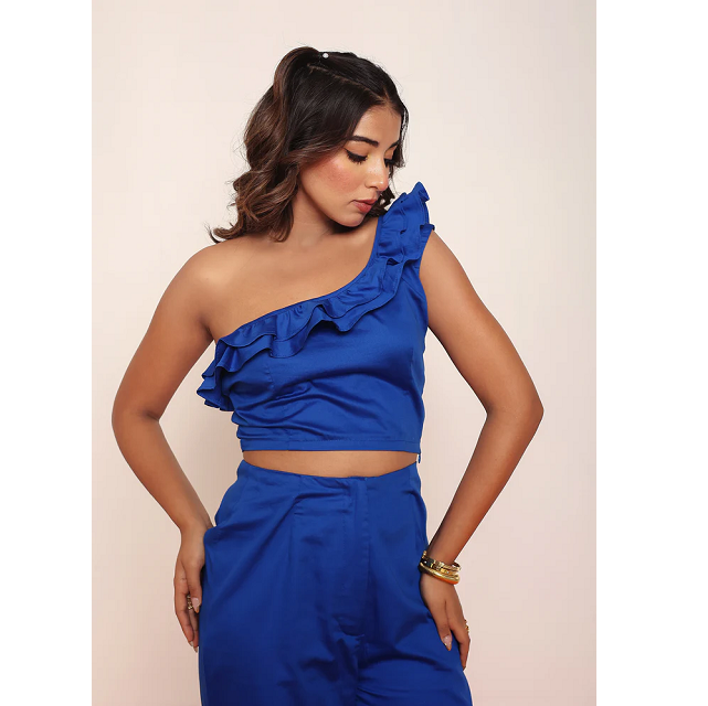 Top de un solo hombro con volantes para mujer, elegante, ajustado, a la moda, para fiestas, chic, para salir de verano.