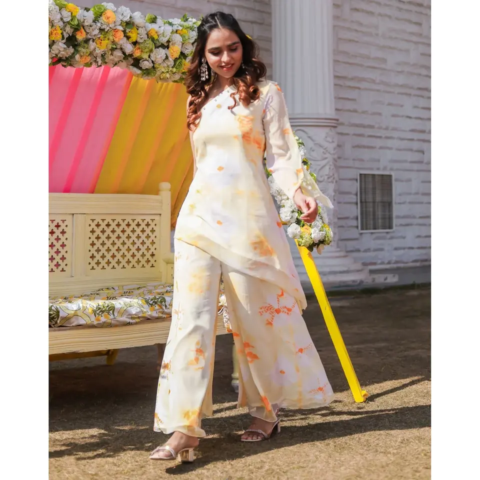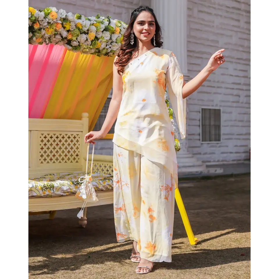 Conjunto Kurta Amarillo Tulipán de Un Solo Hombro para Mujer