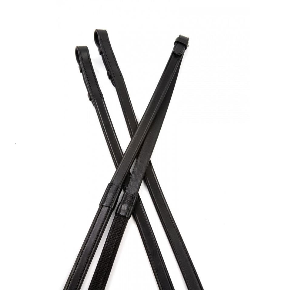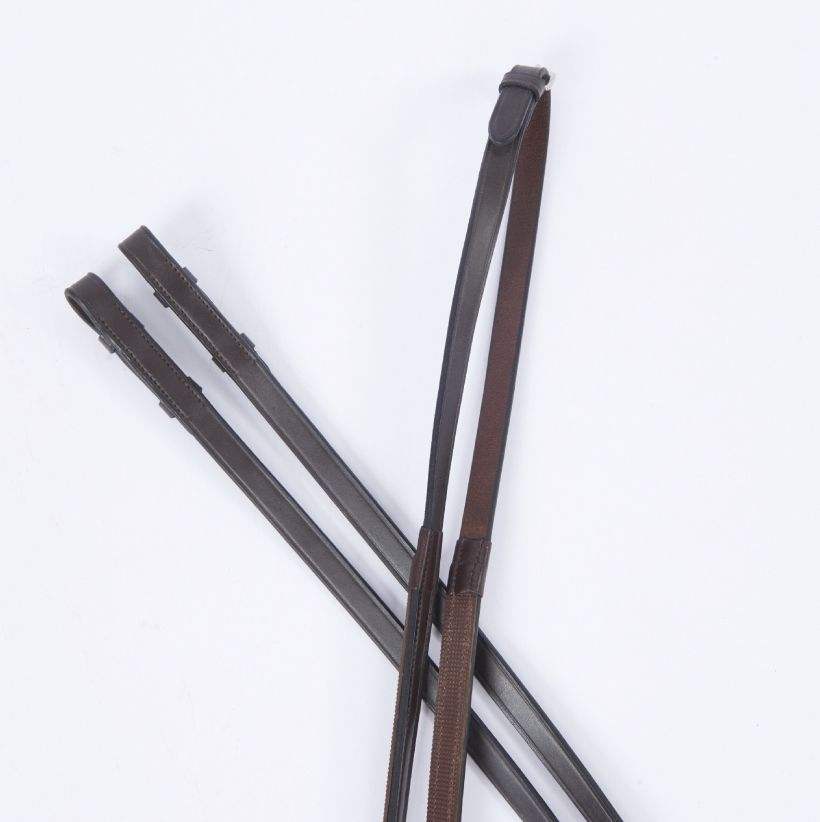 Riendas de goma de un lado Cuero europeo de calidad con un respaldo de agarre de goma que les da la apariencia de riendas lisas con