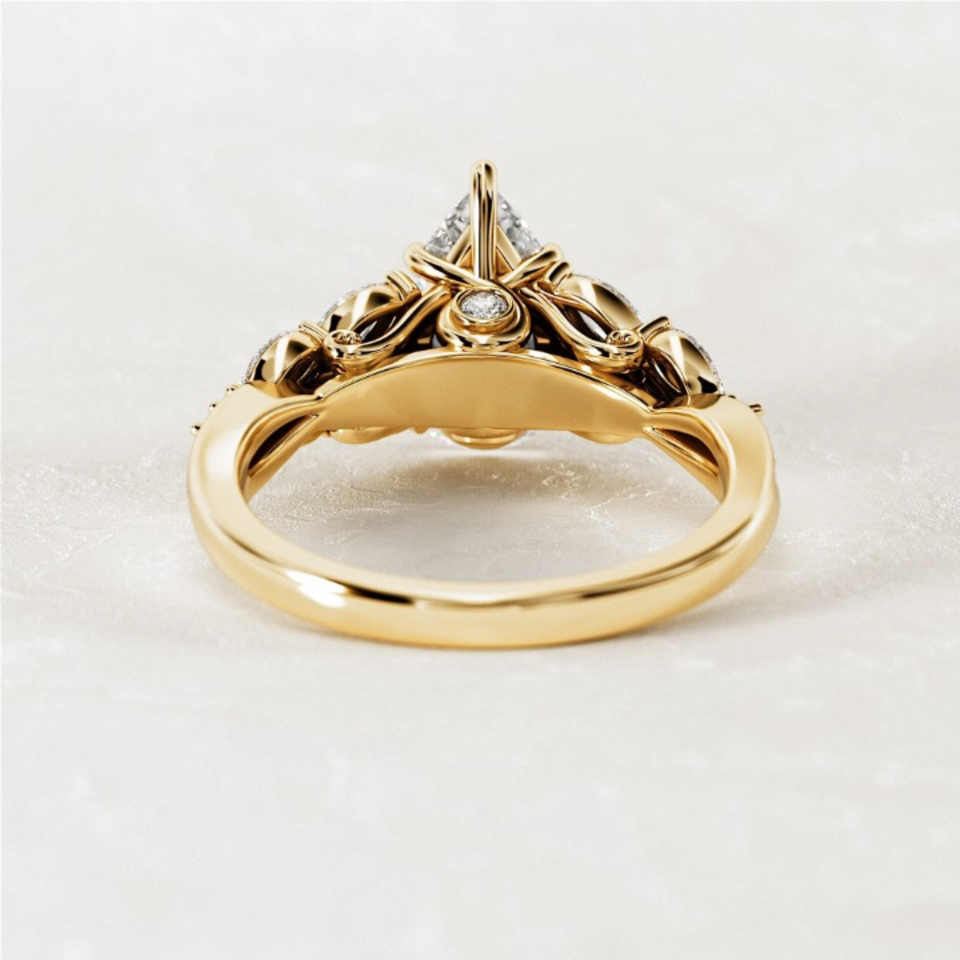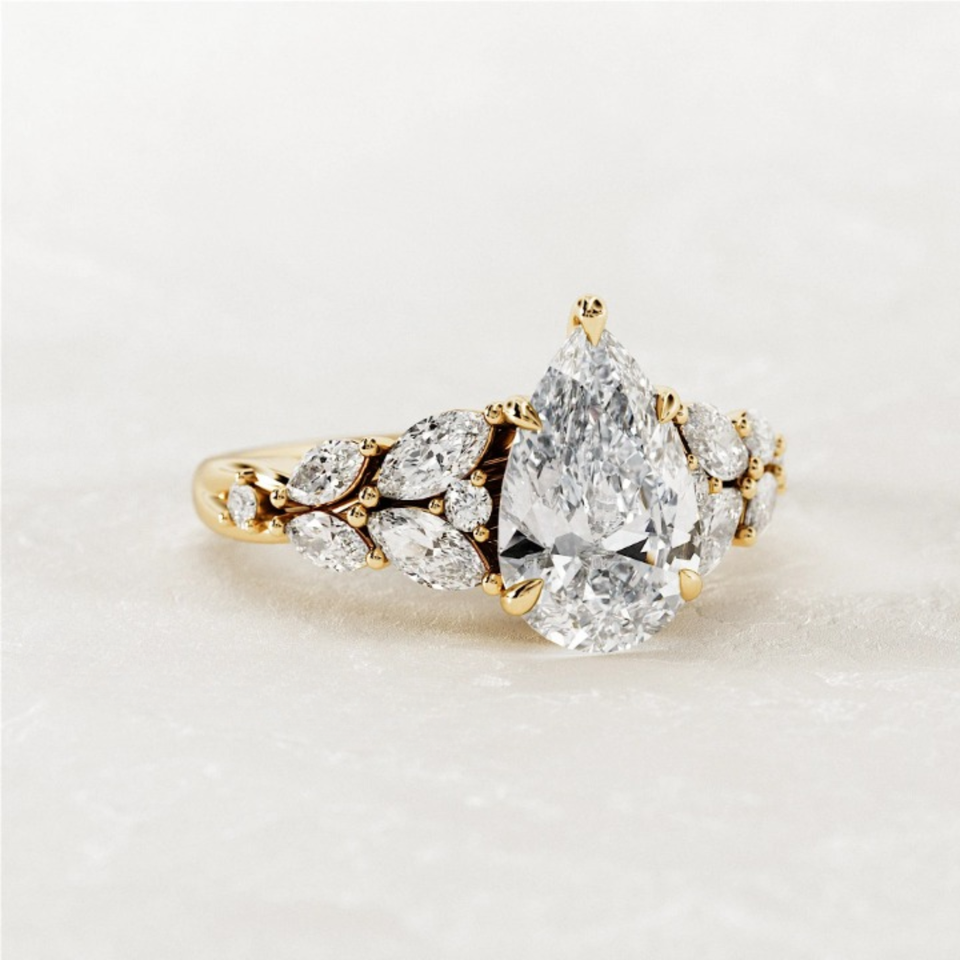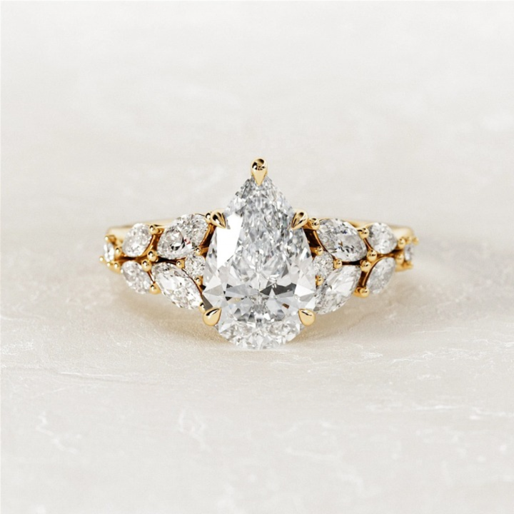 Anillo de Compromiso y Boda con Diamante Cultivado en Laboratorio, Corte Pera, 2.90 Quilates, Oro Amarillo de 14k, Joyería para Regalo