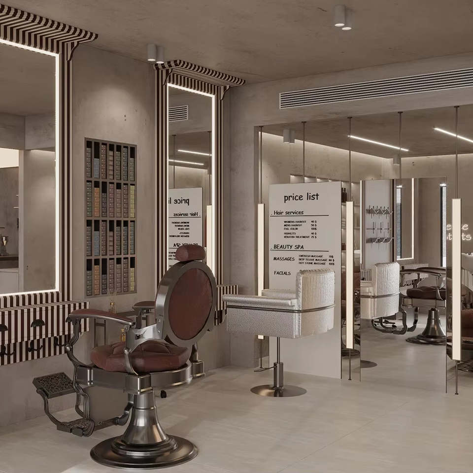 Conjunto de Muebles para Barbería, Estación de Peluquería Personalizada y Espejo de Pared para Renovación de Salón de Belleza