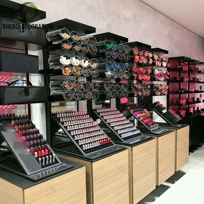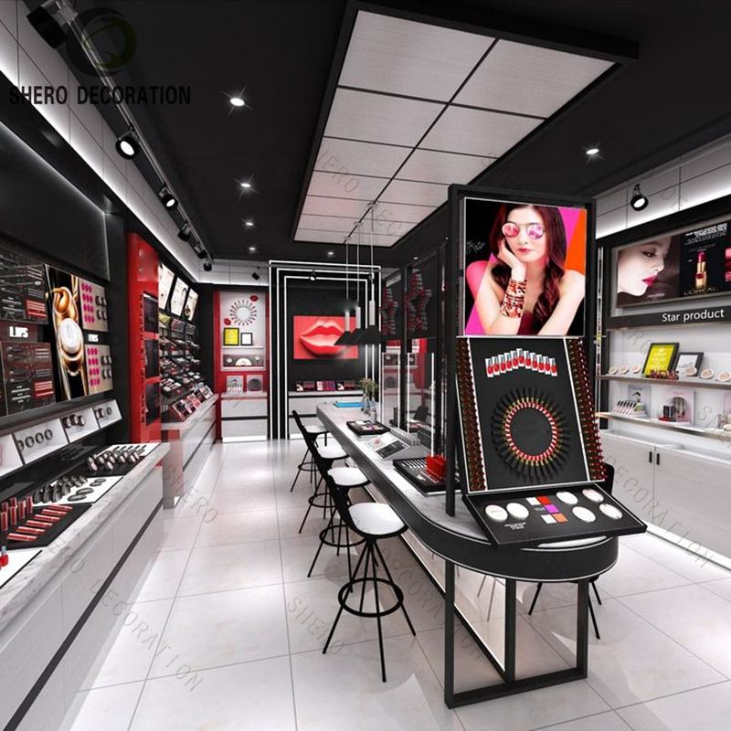 Diseño Interior de Tienda de Cosméticos Personalizado, Mueble de Exhibición de Cosméticos Funcional con Logotipo LED, Estante de Exhibición para Tienda de Maquillaje