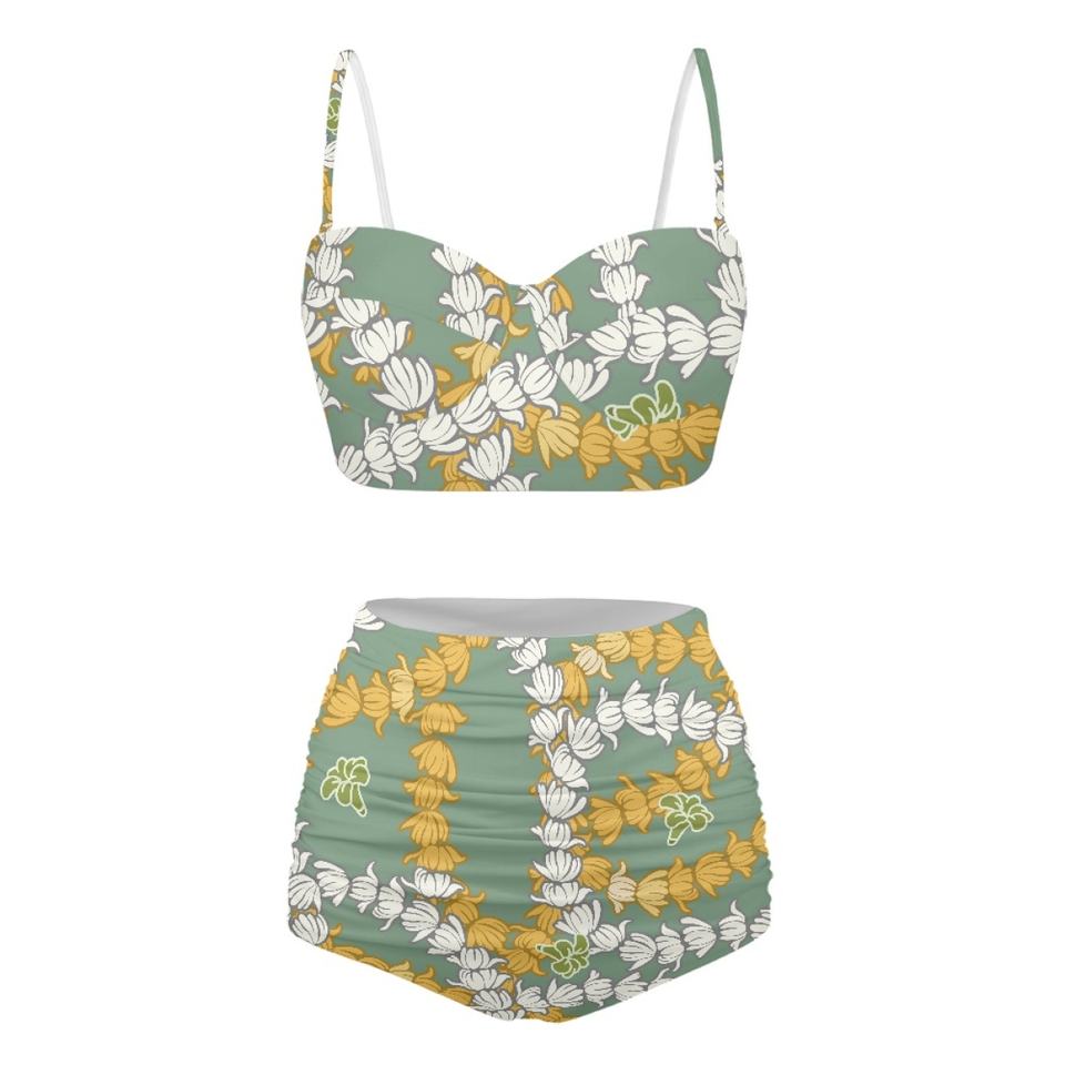 One-To-One Designer Exclusive Customization Service Sexy Fashion Plus Size Bikini Set Maile With the Puakenikeni Print on Demand