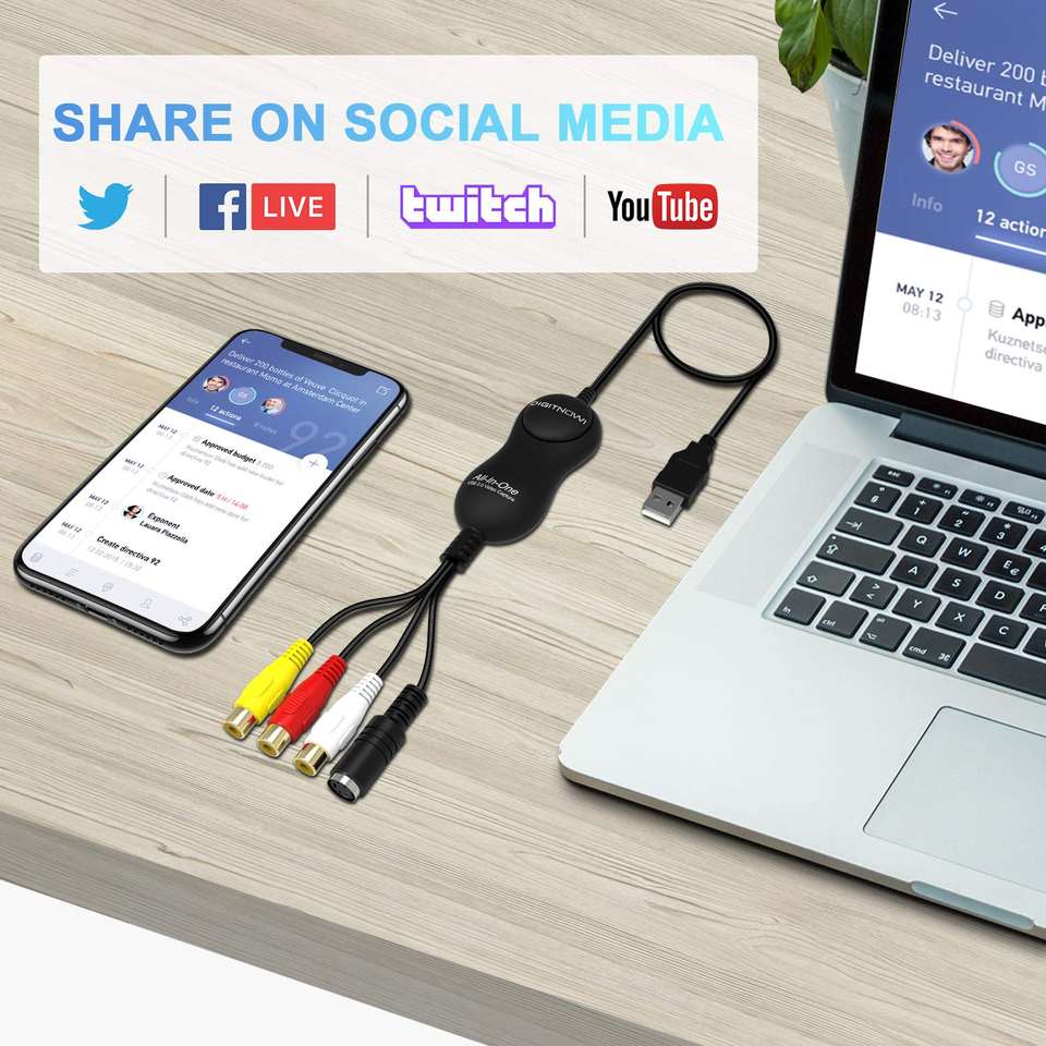 Tarjeta de Captura de Video con un Solo Toque, Convierte Videos Caseros VHS VCR a DVD, Dispositivo Convertidor Digital, Capturador de Video para Windows 10 y Mac OS