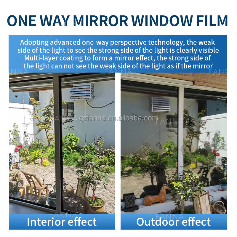 Película de ventana de espejo unidireccional autoadhesiva protección Uv privacidad casa tintes de ventana solares aislamiento térmico vinilo de vidrio 1 rollo embalado en paquete exportado de cartón estándar