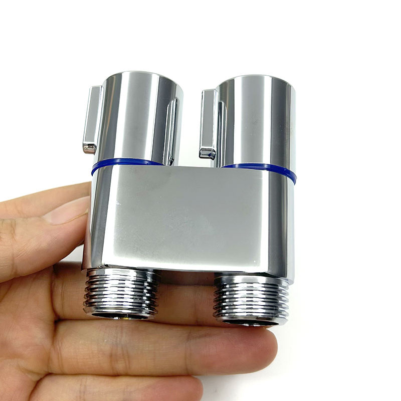 Una entrada y dos válvulas de ángulo de salida Control de doble manija Distribuidor de agua Acero inoxidable Latón Nuevo estilo