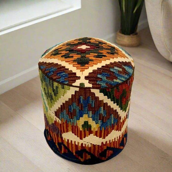 Alfombra Kilim tradicional única de un tipo, PUF otomano, taburete de pie de cuerda de cuentas redondas hecho a mano de algodón único para decoración de boda