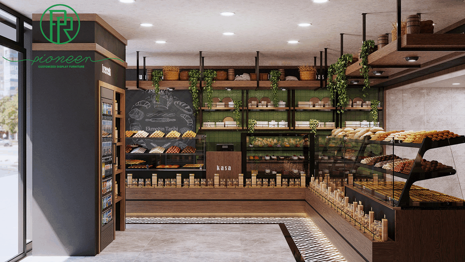 Ideas de Decoración para Panadería, Mostrador de Panadería, Vitrina para Exhibición de Postres, Estantes para Exhibición de Pan