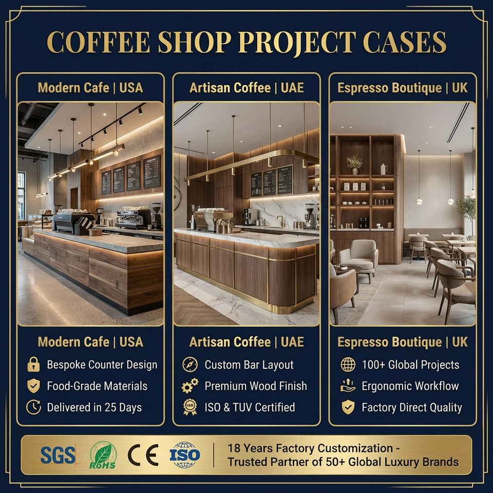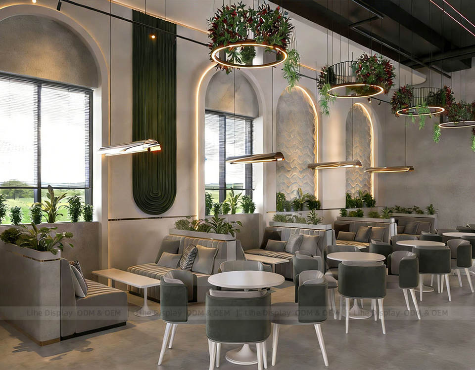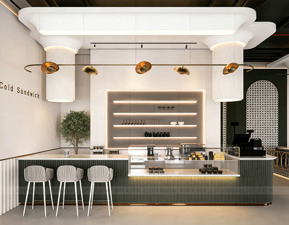 Mobiliario Integral para Cafetería Comercial con Barra Moderna Acanalada, Elegante Mostrador de Recepción en Forma de L, Tienda Boutique