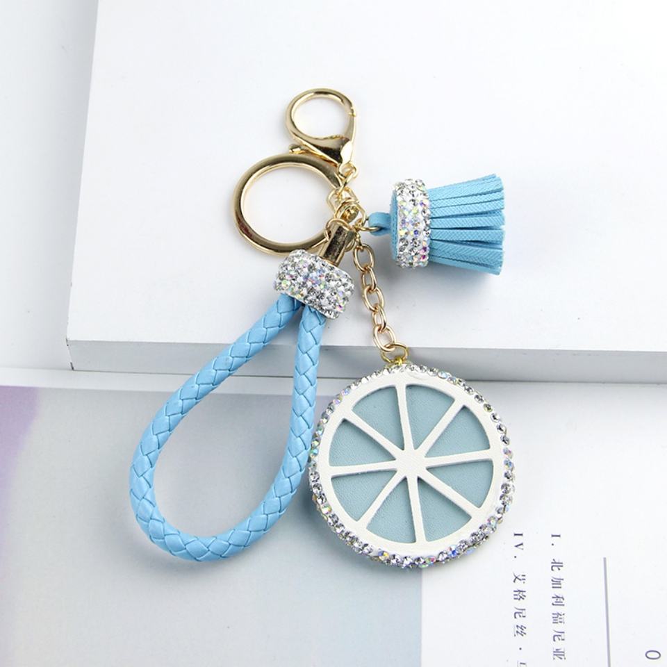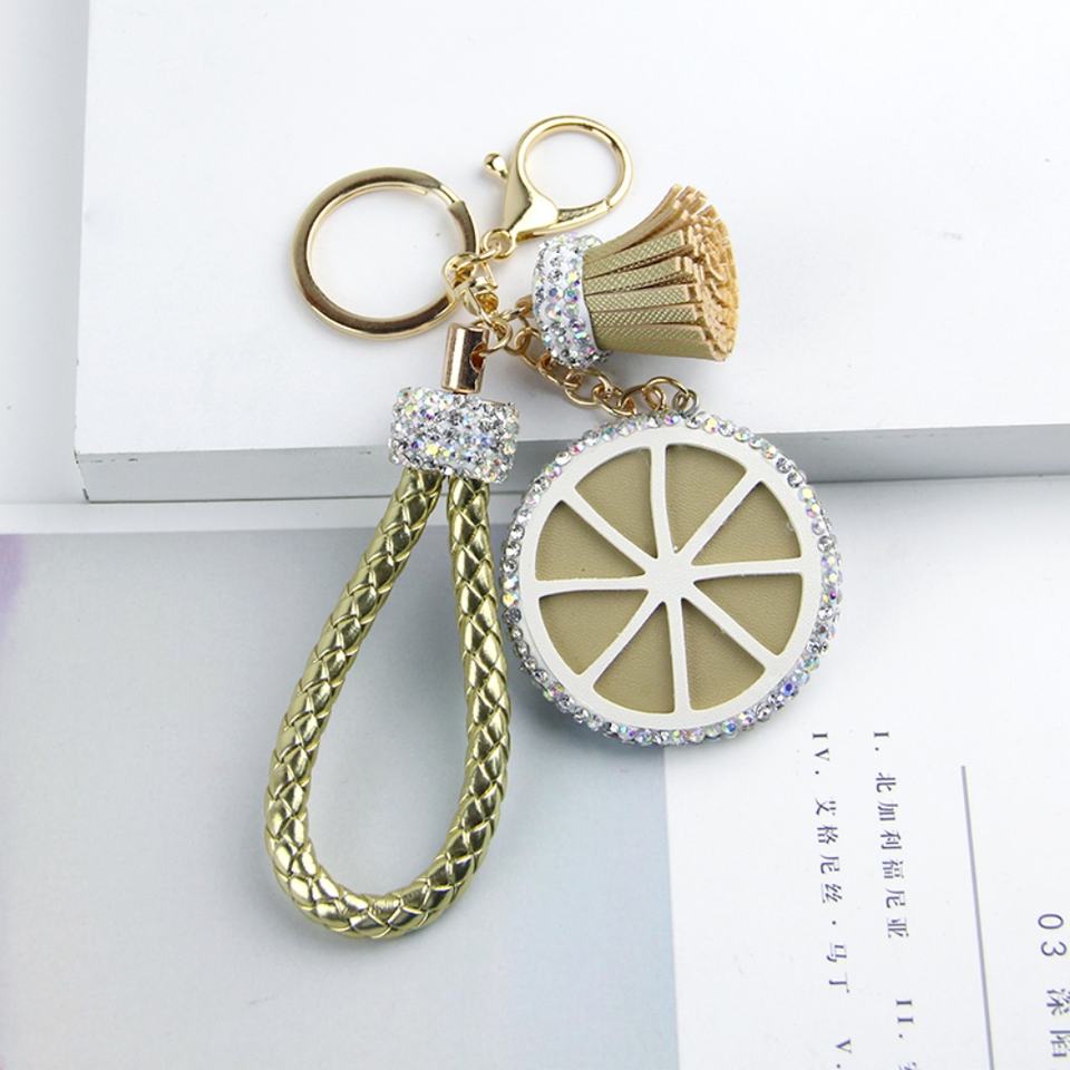 Oneway Llavero de Metal con Diamantes Hechos a Mano y Diseño de Rodaja de Naranja, Colgante de Moda, Adorno para Bolso de Mujer, Accesorios de Llavero con Borla de Cuero PU