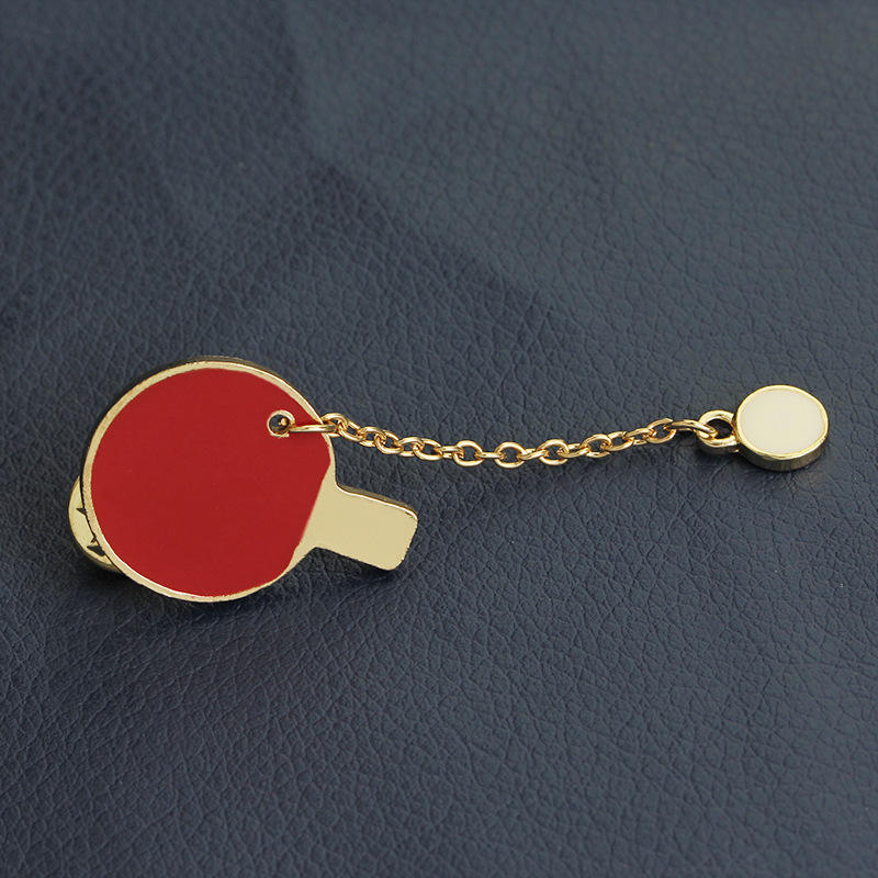 hot selling sport table tennis lapel pin with chain ping pong badge