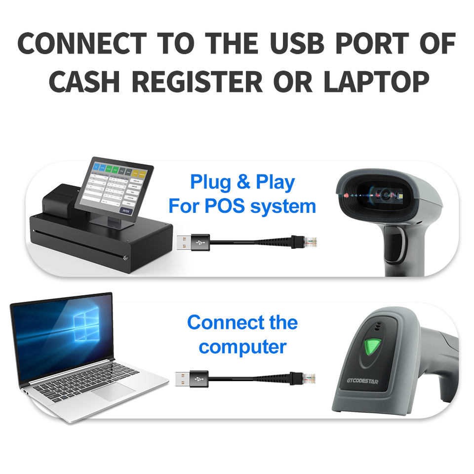 Compras en línea de lector de Rfid CMOS código QR de 2D Cable de escáner de código de barras