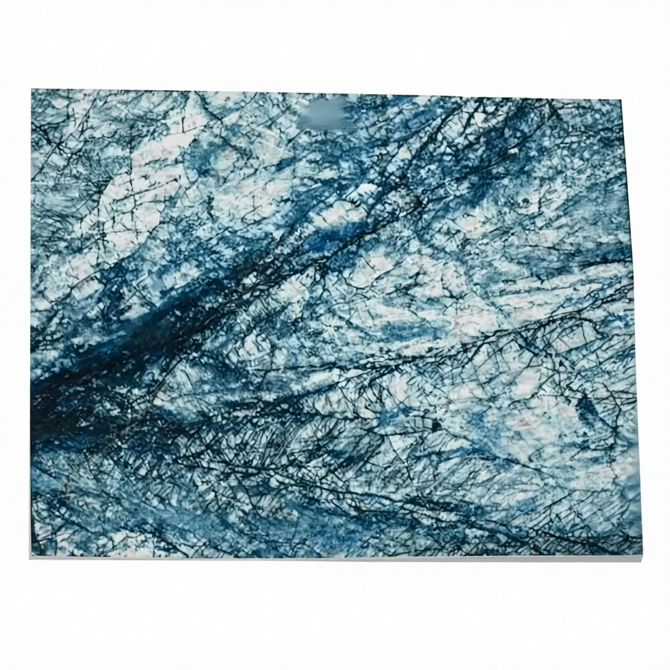 Gran Losa de Ónix Translúcido, Diseño de Fondo de TV de Mármol, Piedra Azul de Cuarzo Pulido Moderno para Pared de Fondo