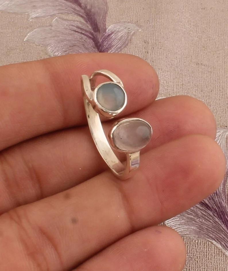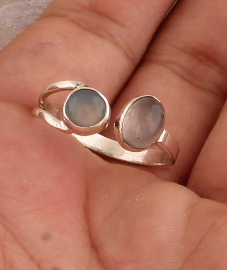 Nombre:Anillo de piedras preciosas de cuarzo rosa y Onyx