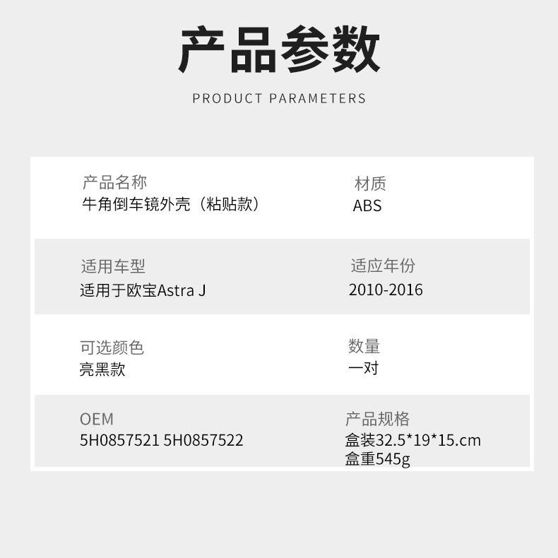 Carcasa de Espejo Retrovisor para Opel Astra J, Negro Brillante, ABS, Espejo Lateral Convexo, Mejora de Diseño, 2010-2016