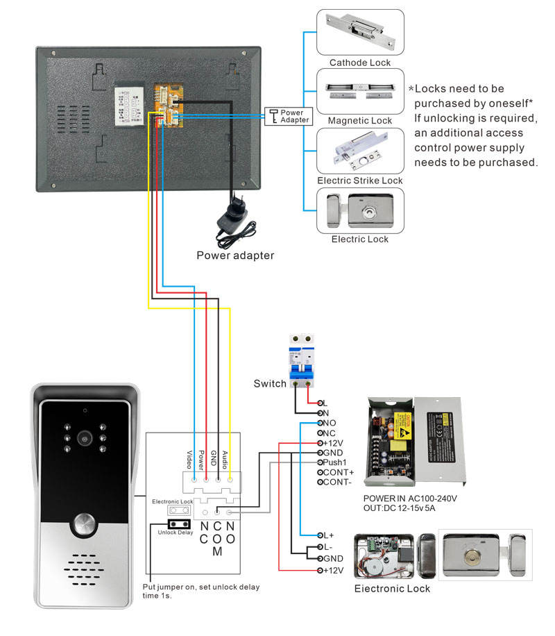 Desbloquear 2 puertas:1. Conéctese al monitor interior y otro a la estación exterior.