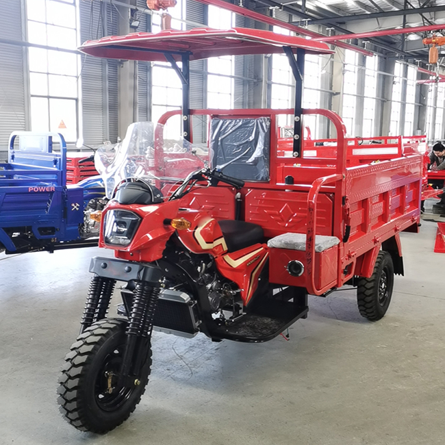 Triciclo inverso de cuerpo abierto, carro agrícola motorizado de gasolina de tres ruedas, triciclo de carga de gasolina para mascotas