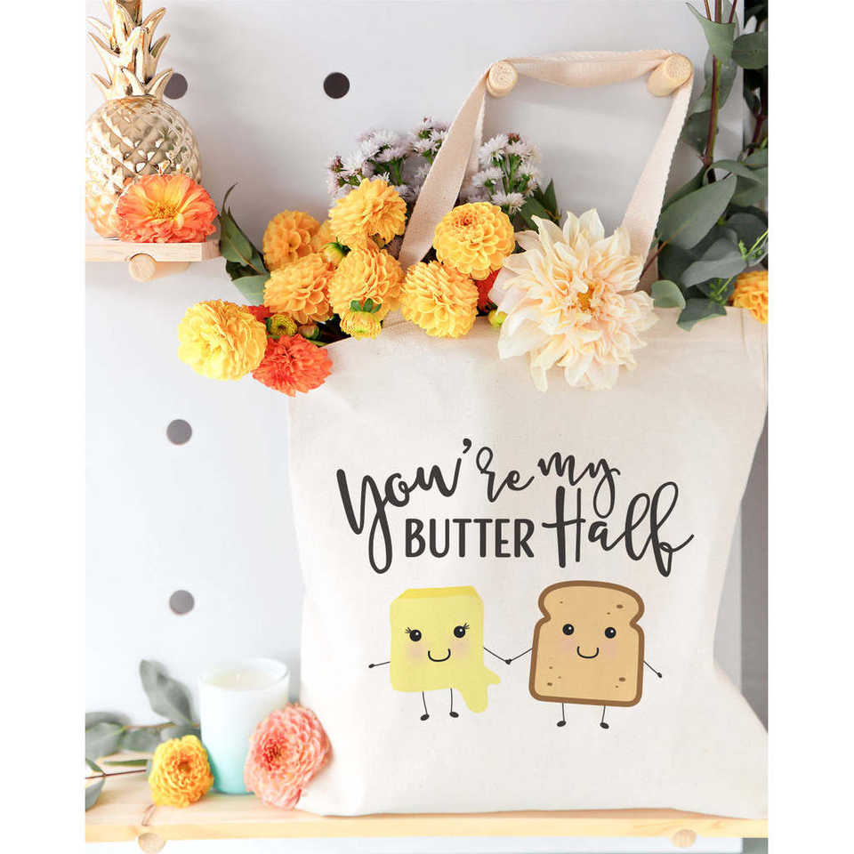 Bolsa de Lona de Algodón con Cierre Abierto 'You're My Butter Half'