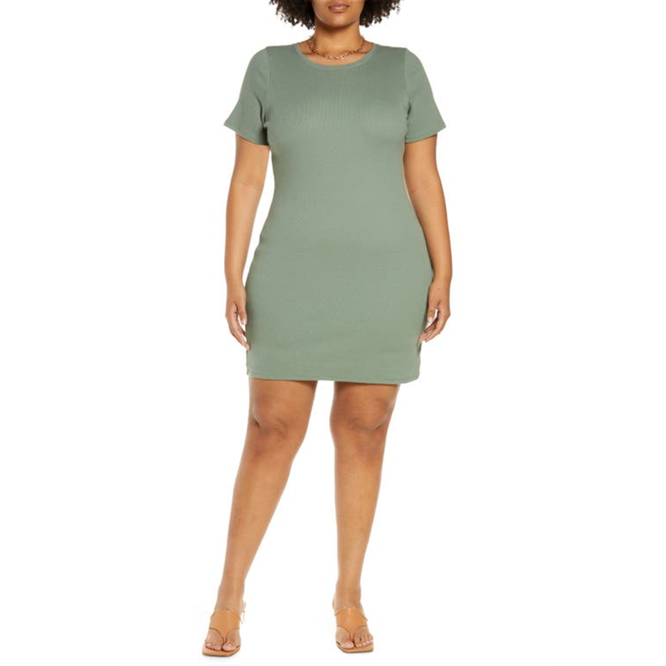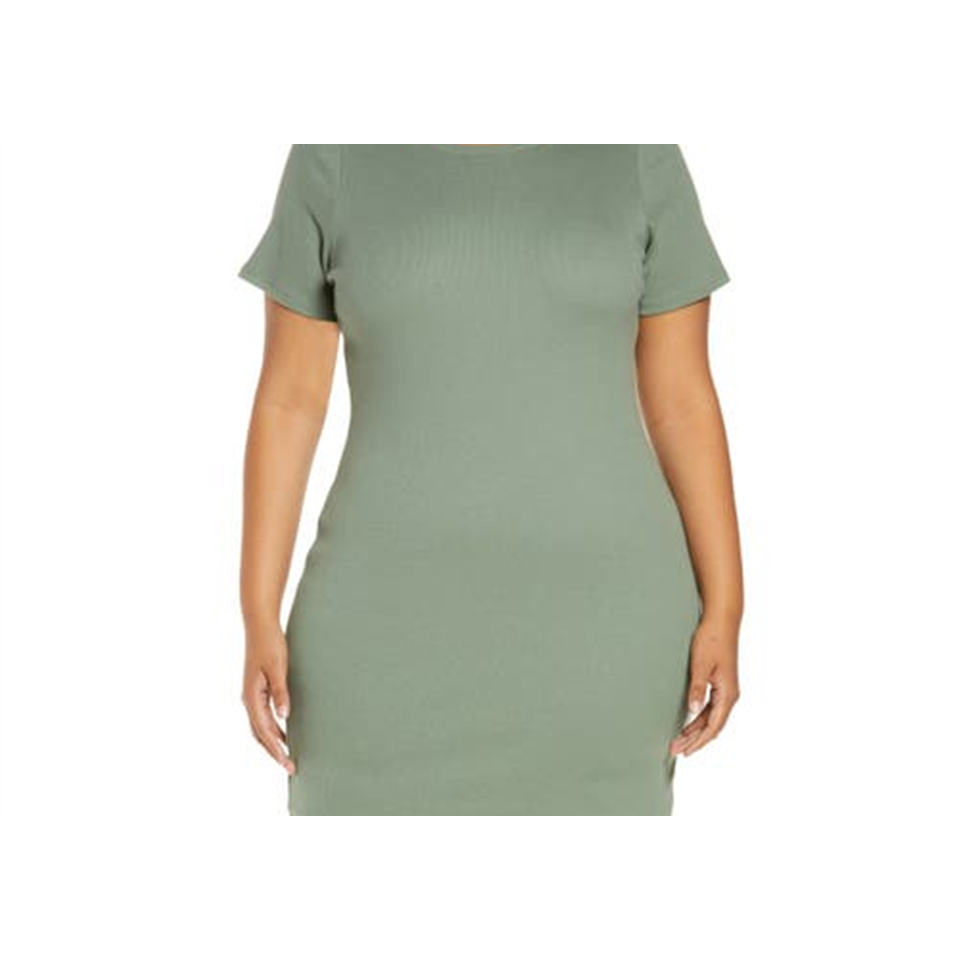 Vestido Casual Ajustado de Canalé Open Edit Talla 1X Verde Agave con Cintura Natural