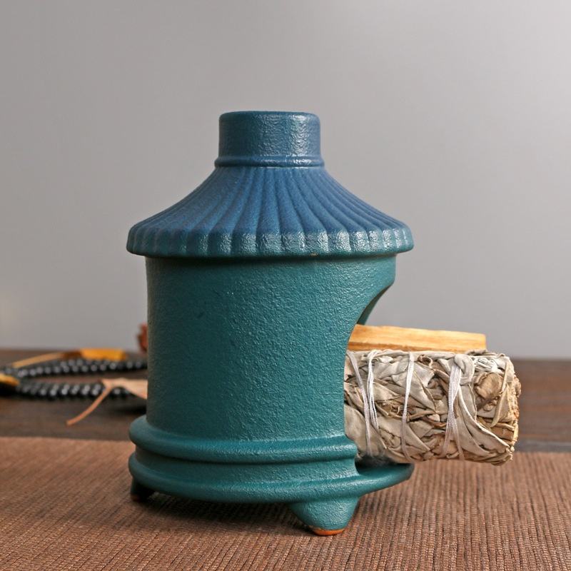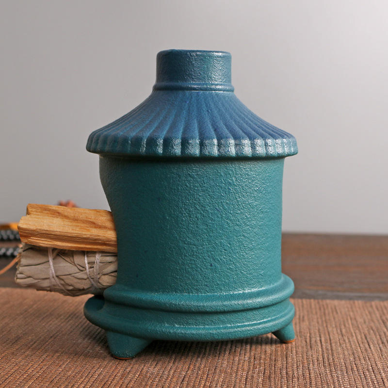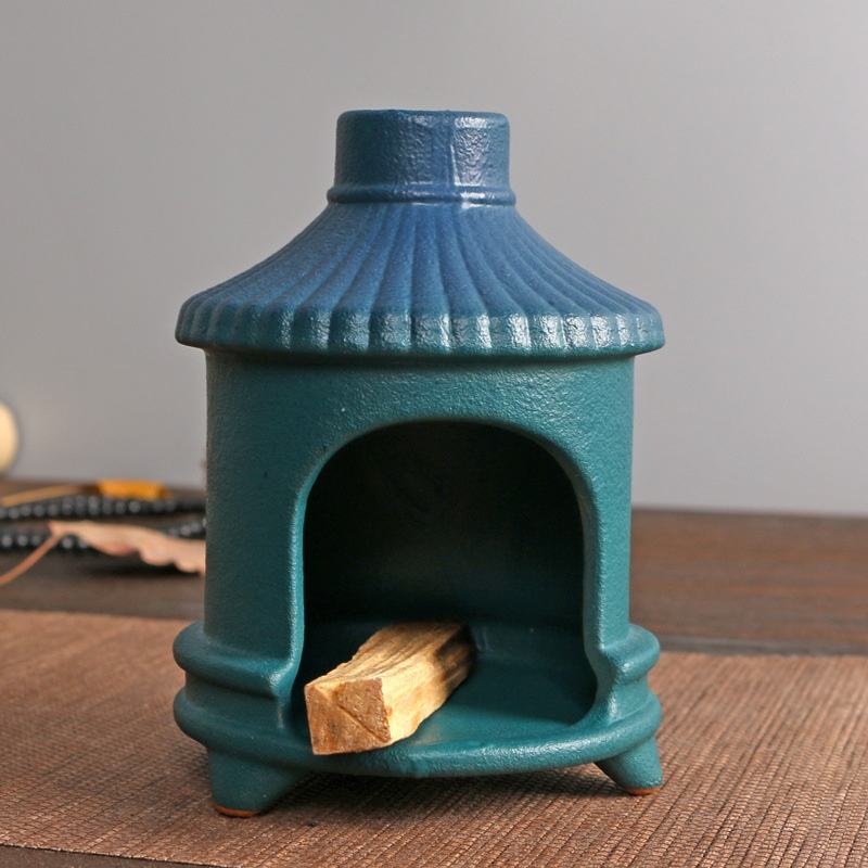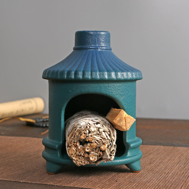 Estufa de aromaterapia de escritorio de cerámica con llama abierta, chimenea pequeña, bandeja para quemar salvia de madera sagrada peruana para macetas