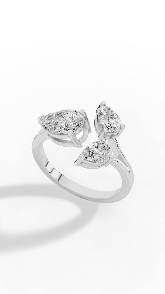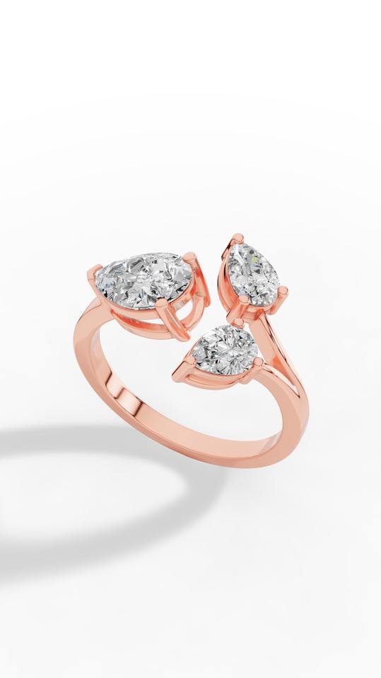 Anillo floral abierto con diamante de laboratorio talla pera, oro de 10K, venta al por mayor, fabricante y proveedor de joyería fina OEM
