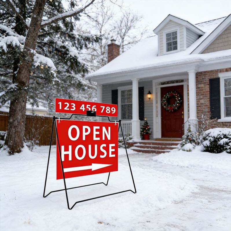 Letrero Tipo A para Open House, Soporte de Aluminio con Estilo de Bandera y Impresión Digital para Agentes Inmobiliarios