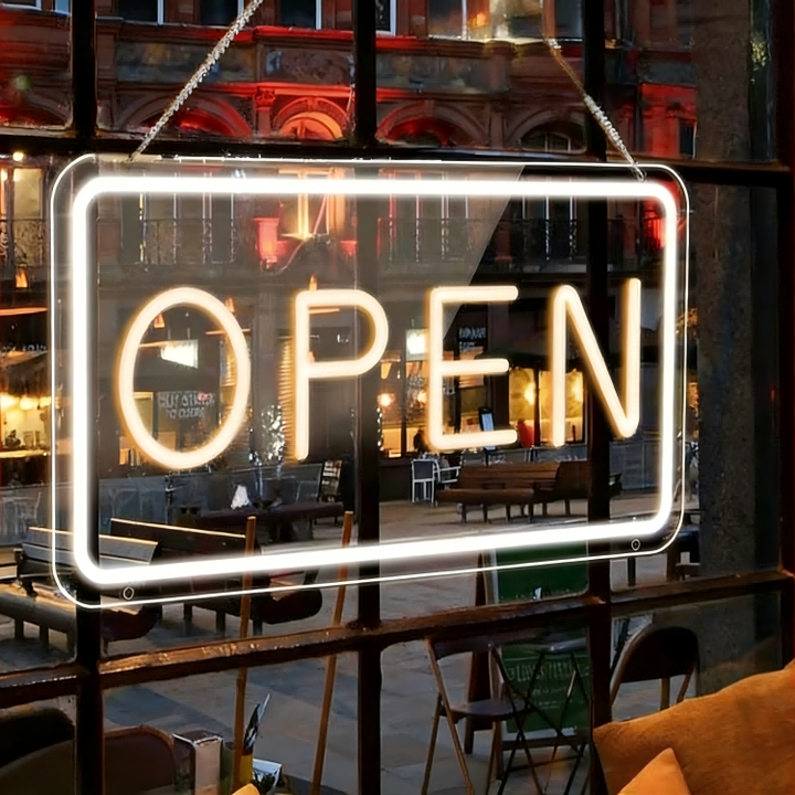 Letrero LED de Neón Abierto - Letrero Luminoso con Logotipo para Publicidad de Bodas al Aire Libre, para Oficina, Bar, Tienda, Interior, Letras de Marquesina Acrílicas