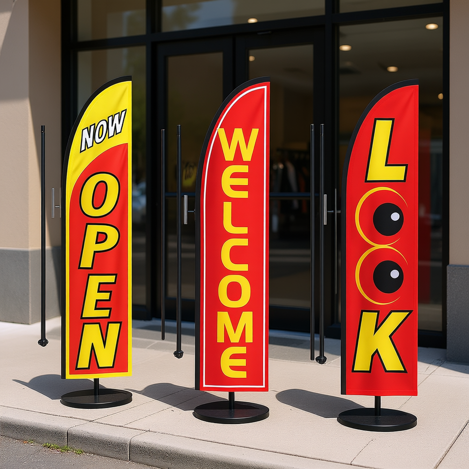 Kit de Bandera de Bienvenida con Diseño Abierto, Mástil de Aluminio de 4.5 M, Material de Poliéster, Impresión Digital, Publicidad Comercial