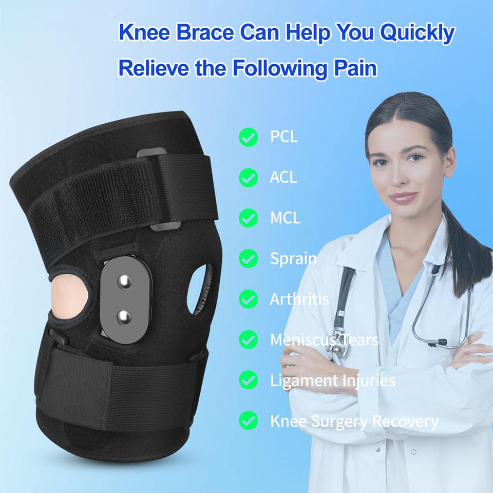 Soporte inmovilizador de rodilla con diseño de rótula abierta y articulaciones para alivio del dolor articular/Artritis/Rotura de menisco/ACL/PCL/MCL