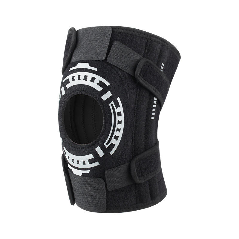 Rodillera de compresión con correa de rótula abierta con estabilizadores de resorte lateral acolchados y almohadilla de silicona para correr