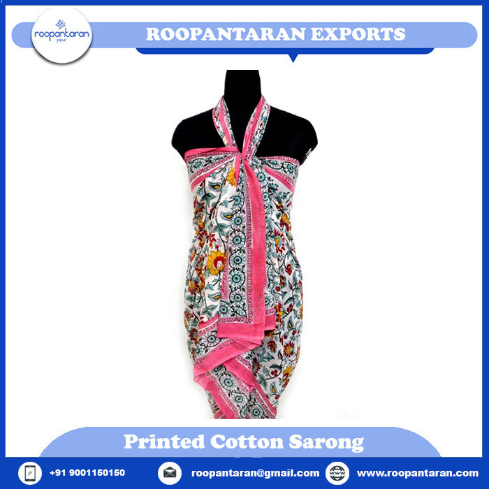 Open Pink Phuljhari Sarong Último diseño floral elegante Bloque de mano Impreso Envoltura de algodón para mujer Fitness Maternidad Ropa deportiva
