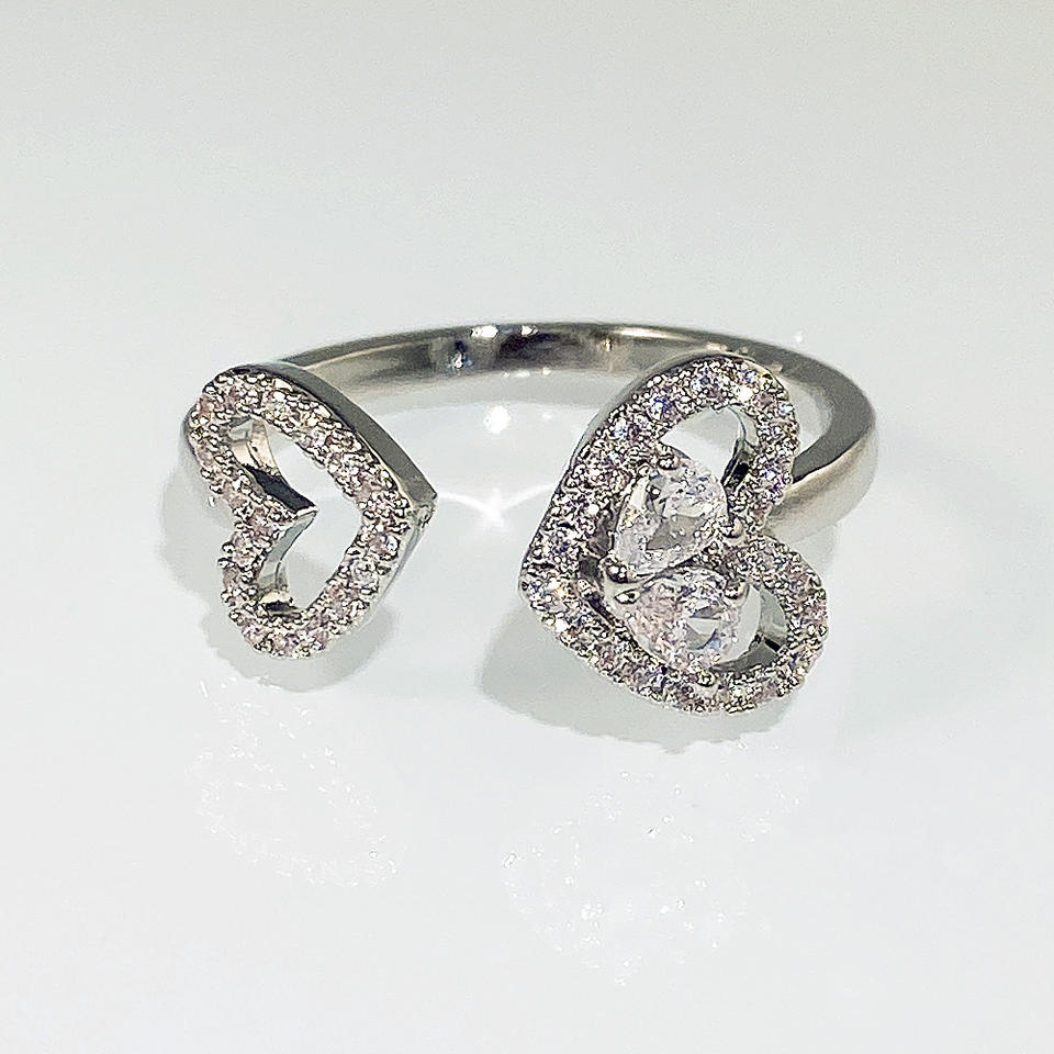 Anillo Abierto con Forma de Corazón, Circonita Cúbica, Chapado en Rodio, Joyería Romántica de Compromiso para Mujer