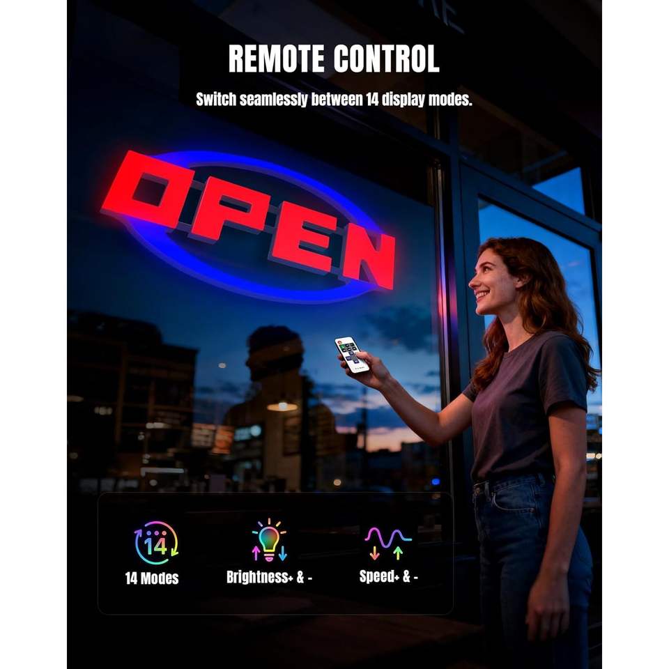 Letrero LED luminoso de 33 x 16 pulgadas con control remoto y temporizador para tiendas minoristas, bares, oficinas, restaurantes y salones