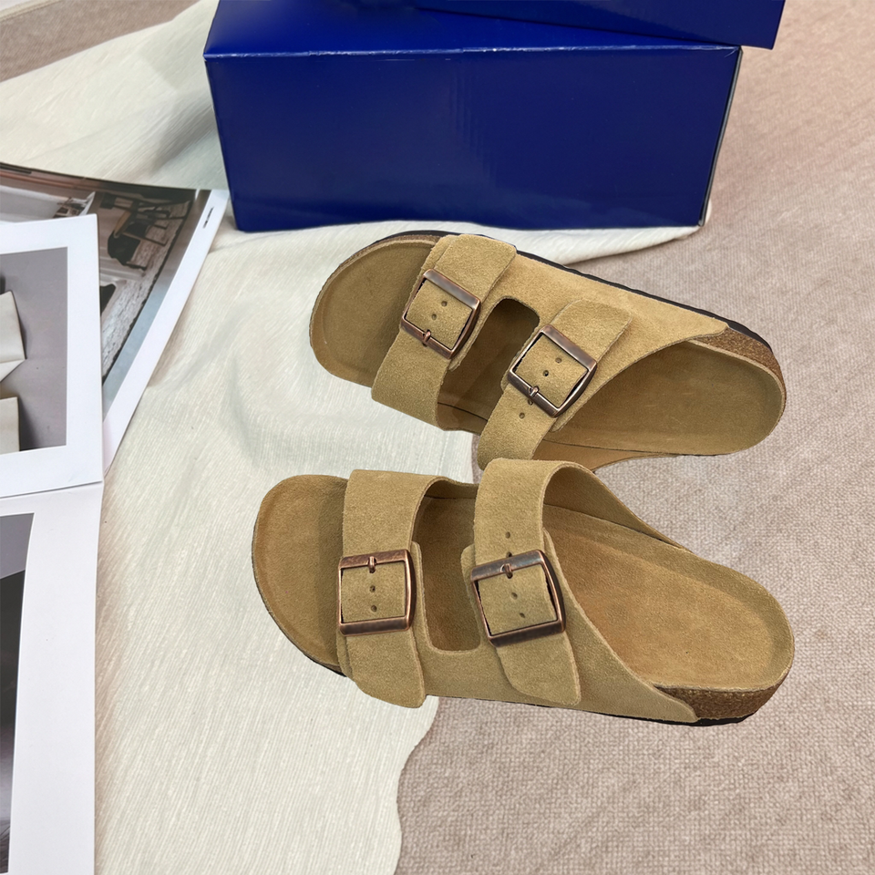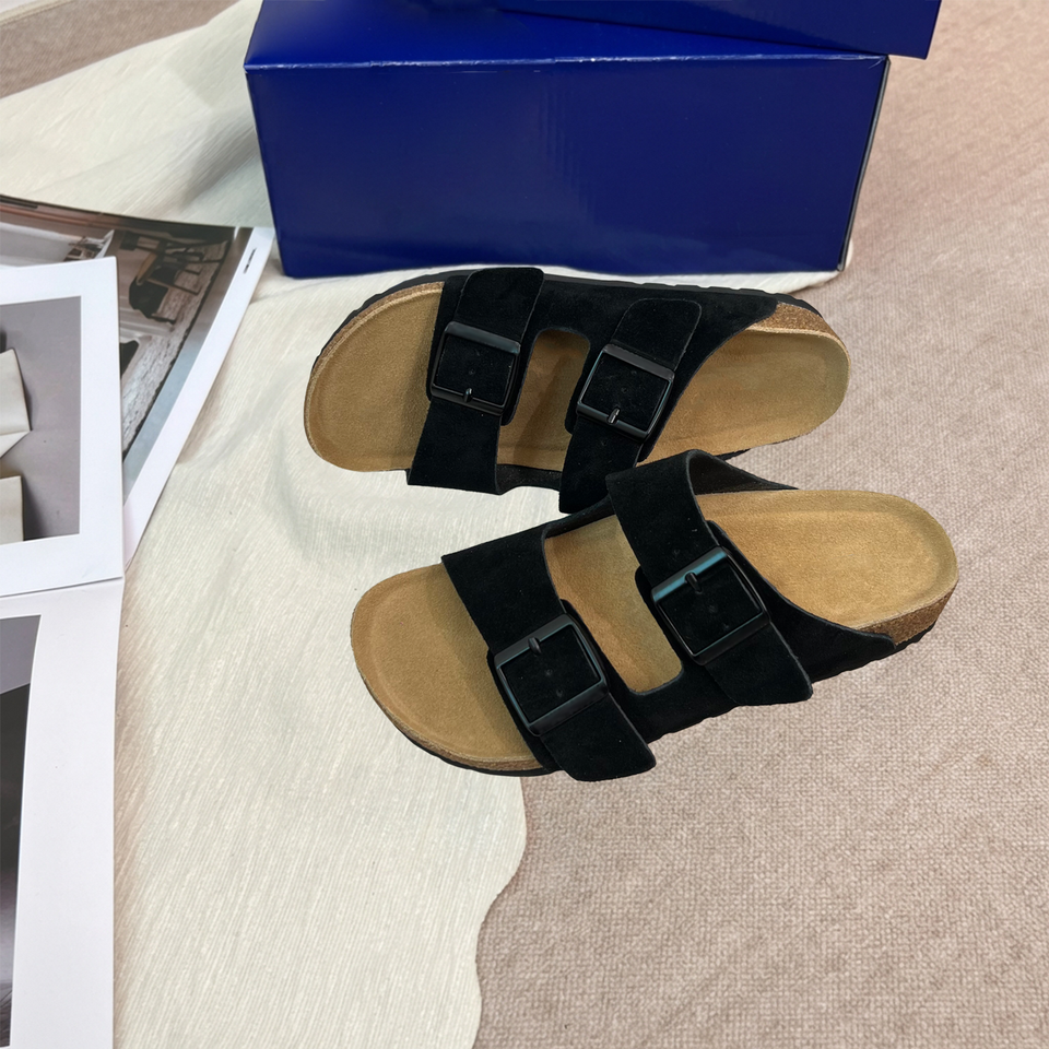 Sandalias de Corcho con Punta Abierta, Cómodas y Ajustables con Doble Hebilla, Plantilla de Gamuza Suave y Soporte para el Arco