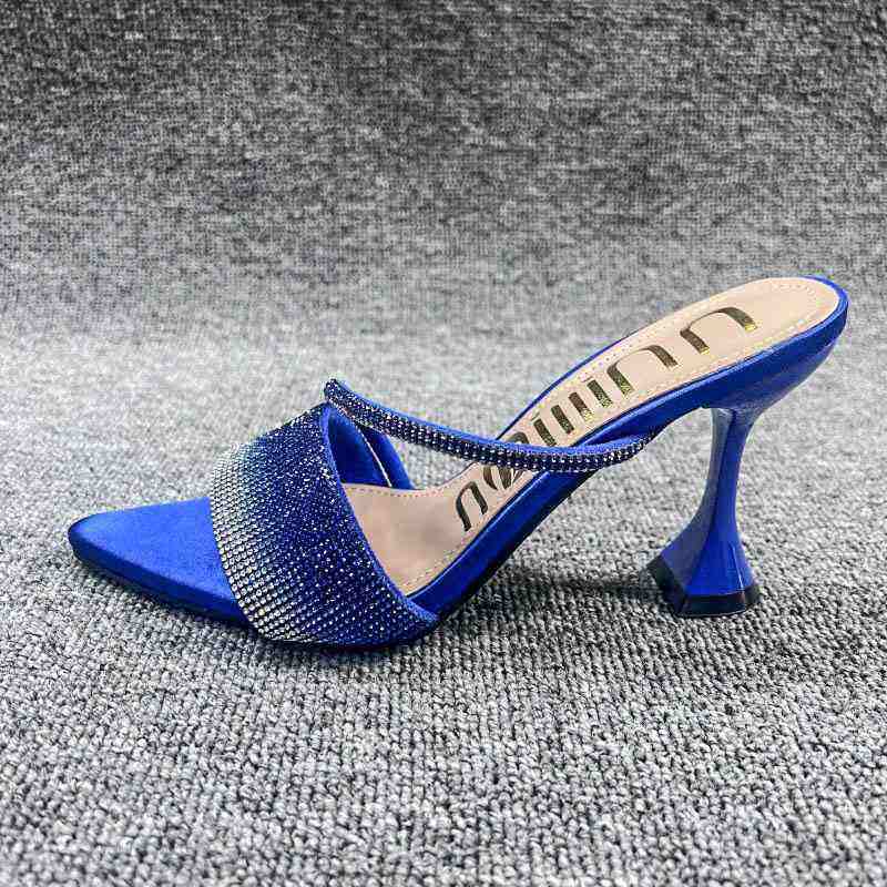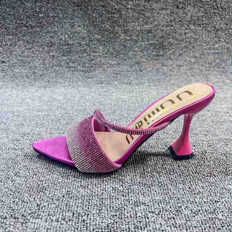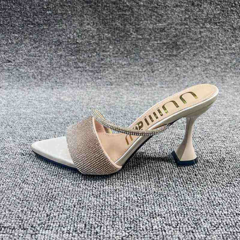 Sandalias de Tacón con Pedrería y Punta Abierta, Estilo Coreano, Primavera/Verano 2024, para Mujer