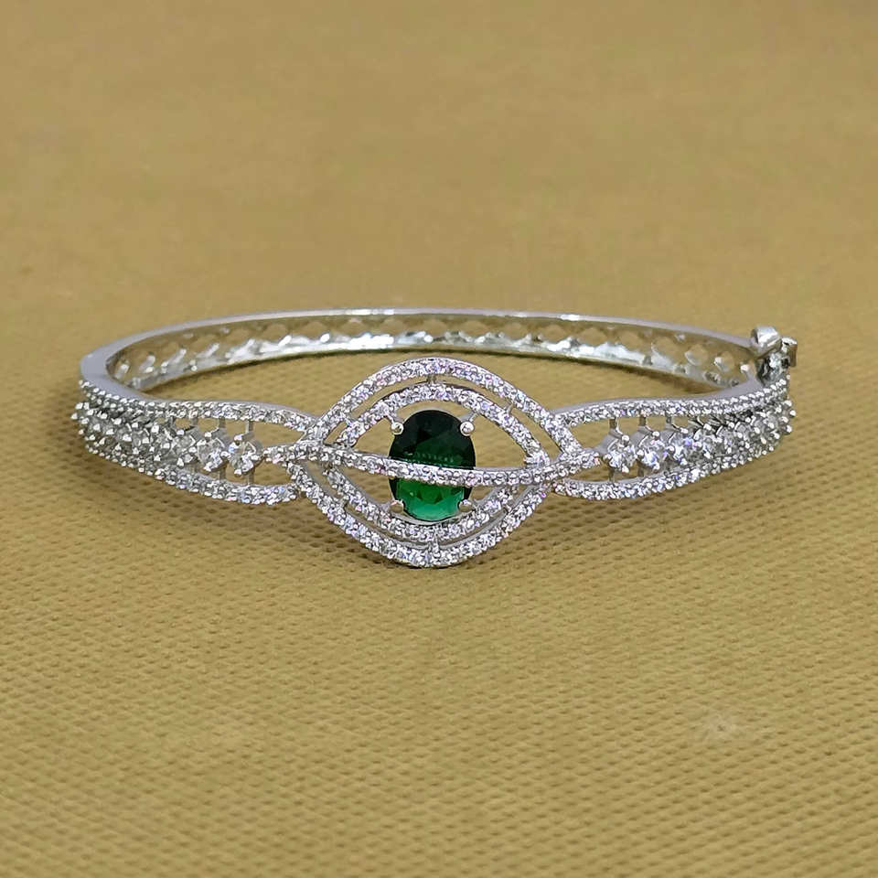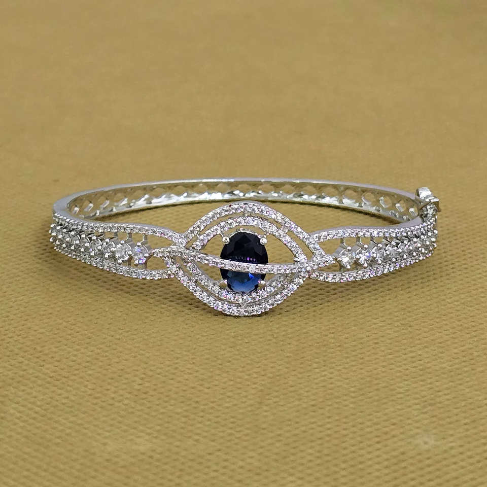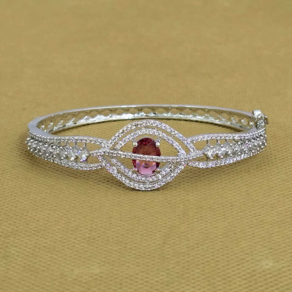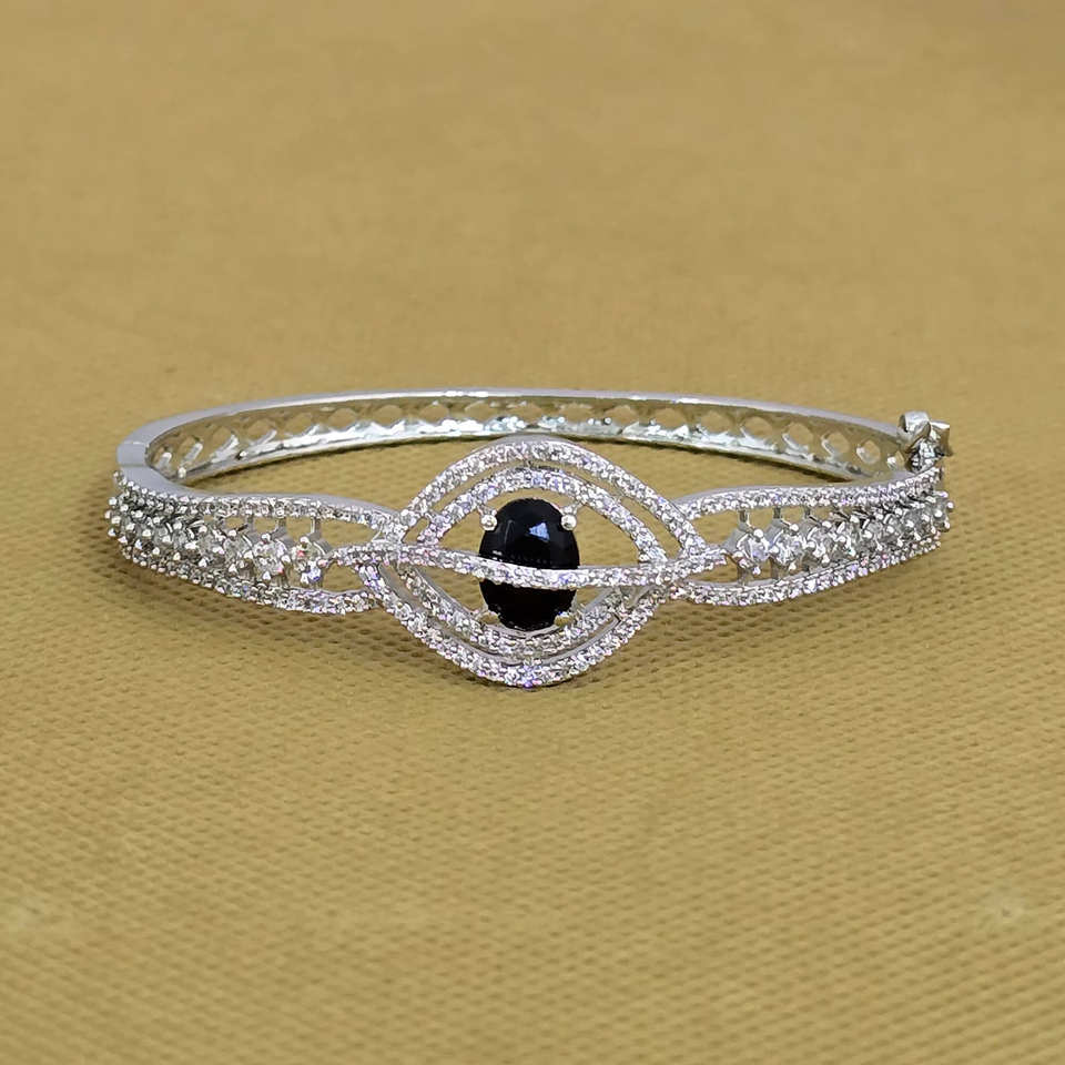 Pulsera de cuentas finas que se puede abrir con chapado en rodio y circonita cúbica acentuada Kada
