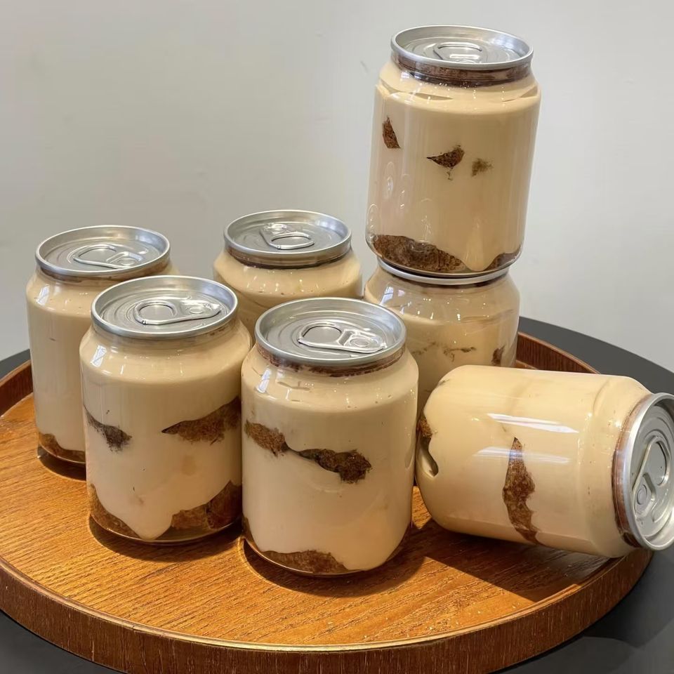 Caja de plástico con anillo de apertura para pasteles POP, 250ml 330ml, tarros de PET de fondo plano para postres, con sello de aluminio de fácil apertura