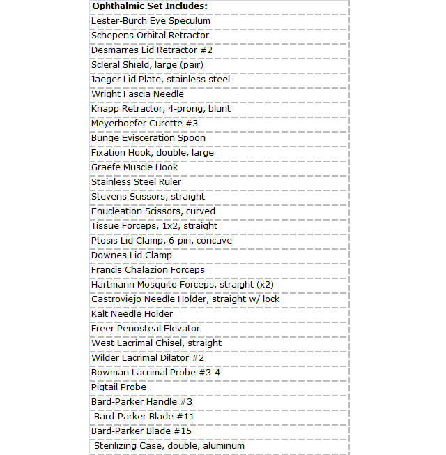 Nombre:Conjunto de Instrumentos para Cirugía Oftálmica