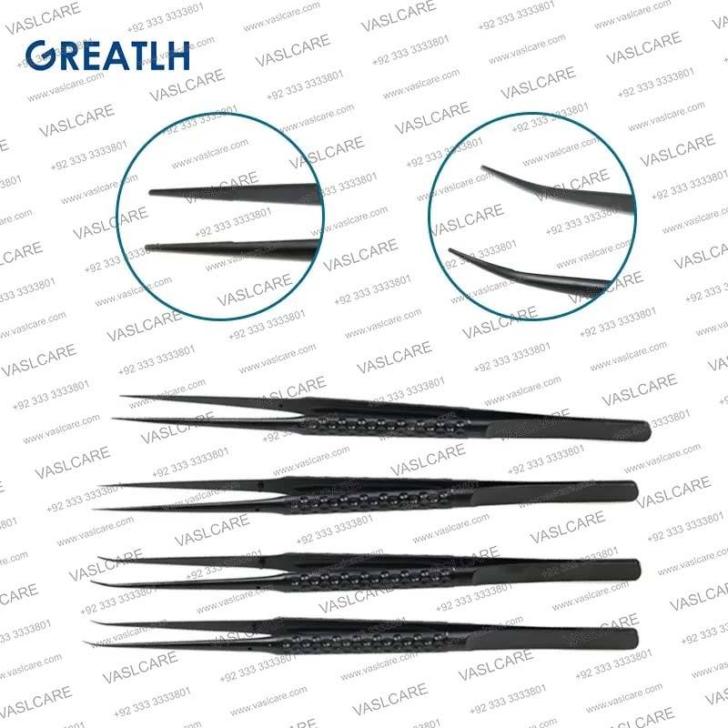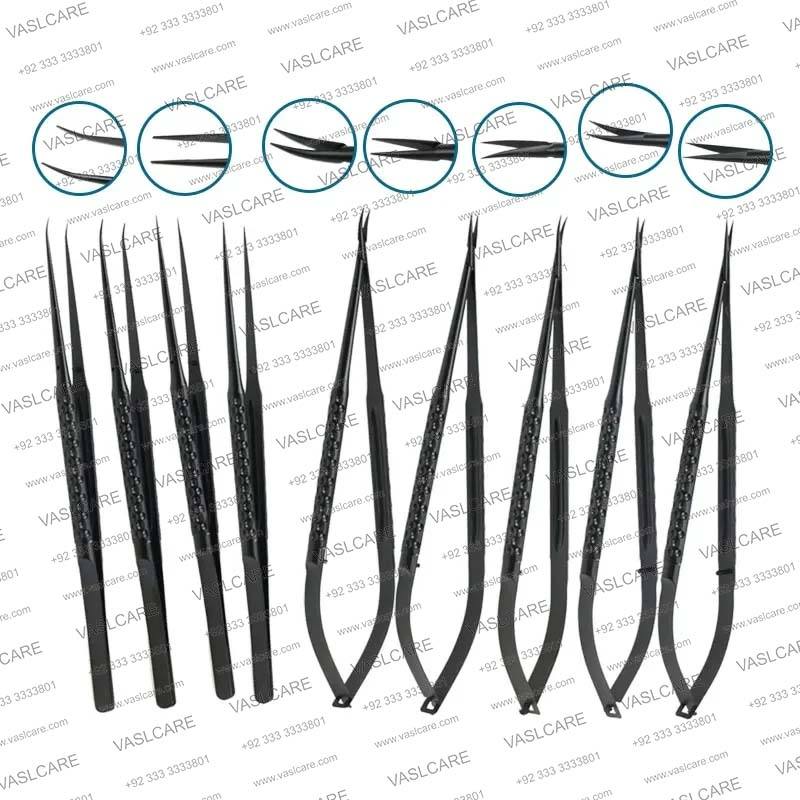 Microtijeras y fórceps oftálmicos | Instrumentos autoclavables de acero inoxidable rectos y curvos tipo media luna de Vaslcare