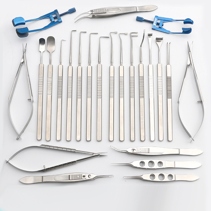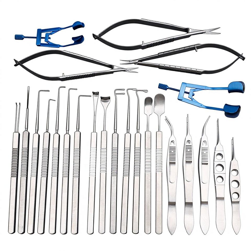Juego de 24 Piezas de Instrumentos Quirúrgicos Oftálmicos para Estrabismo, Instrumental Microquirúrgico Oftálmico