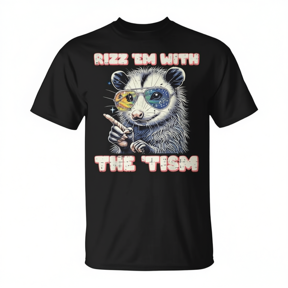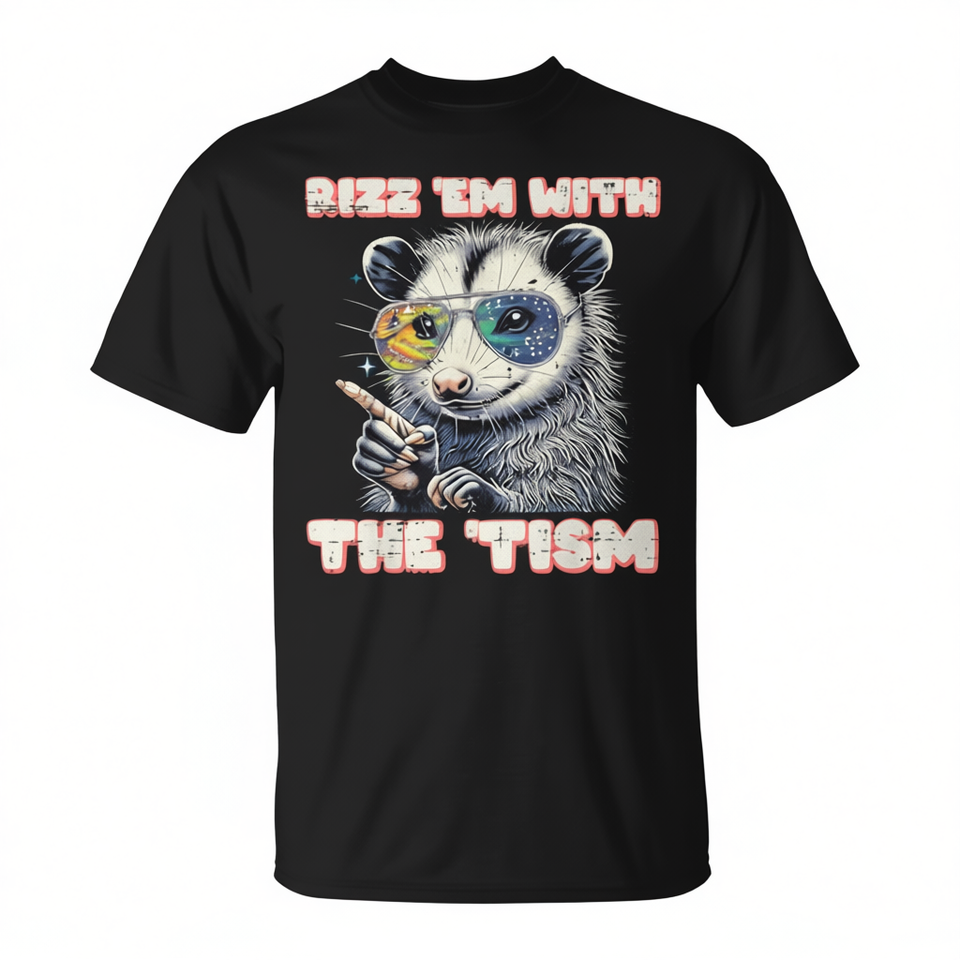 Camiseta de Hombre con Estampado Digital de Memes de Opossum con Autismo, Cuello Redondo, Manga Corta, Promocional para Adultos