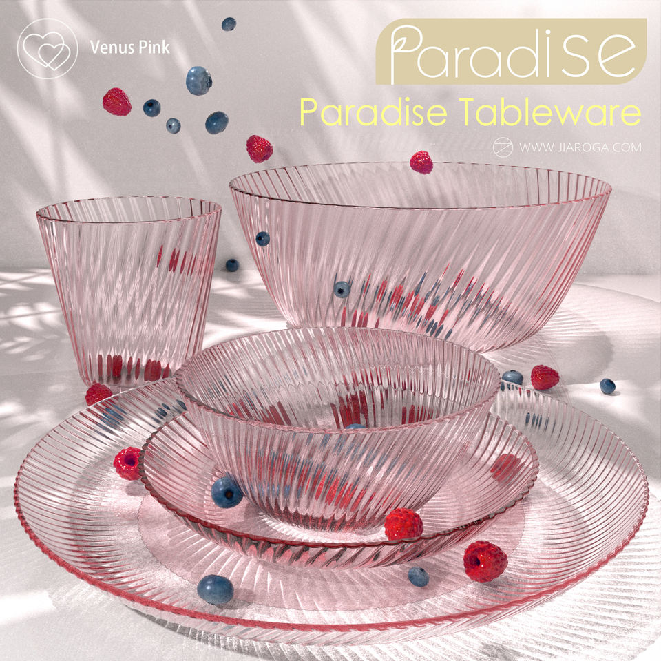Vajilla con Textura Óptica Hecha en Taiwán, Edición Wonderland - Tazas, Tazones, Platos - Rosa Venus