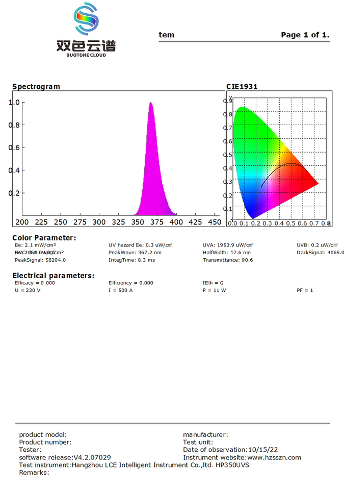 Nombre del producto:Medidor de iluminancia espectral HP350UV