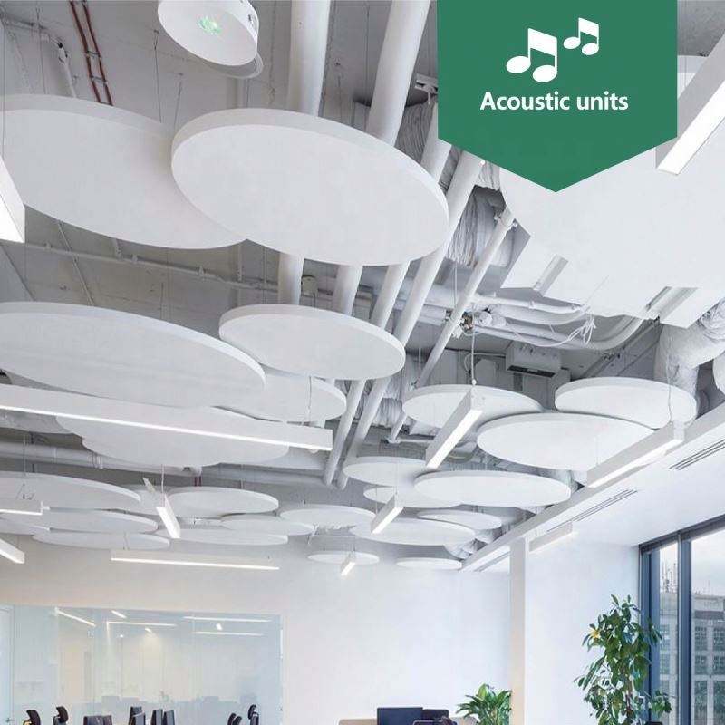 Paneles Acústicos Optimizados para Techo, 4x4 pies, Diámetro 800, 1200, 1600 mm, Circulares, Colgantes, Unidad Absorbente para Techo Abierto