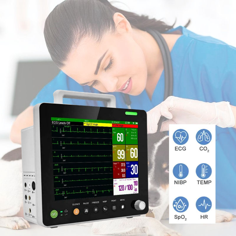 Idioma opcional Monitoreo de anestesia veterinaria Signos vitales Monitor ECG Multiparametro Veterinarios Trolley Monitor veterinario