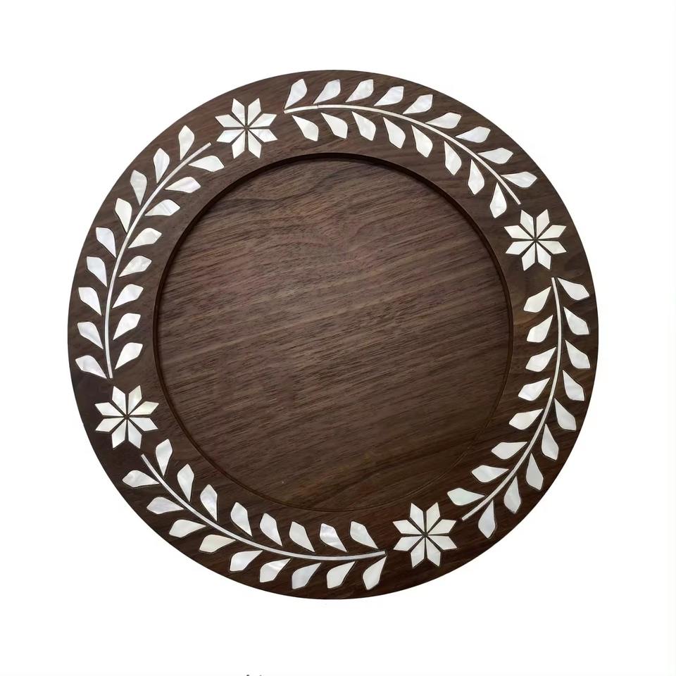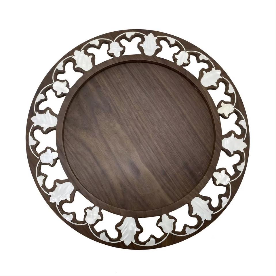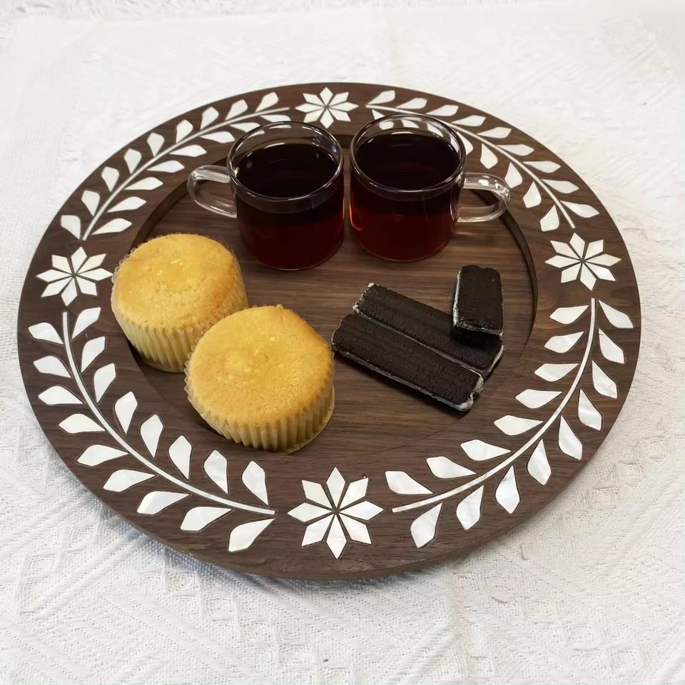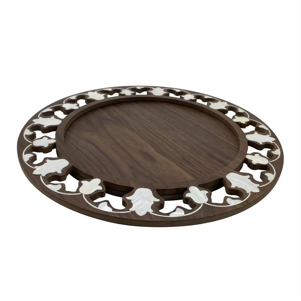 Bandeja de servicio con incrustaciones de fregona de madera de diseño árabe opulento, bandeja hecha a mano Premium para cocina, comedor, regalos de celebración de Ramadán y Eid