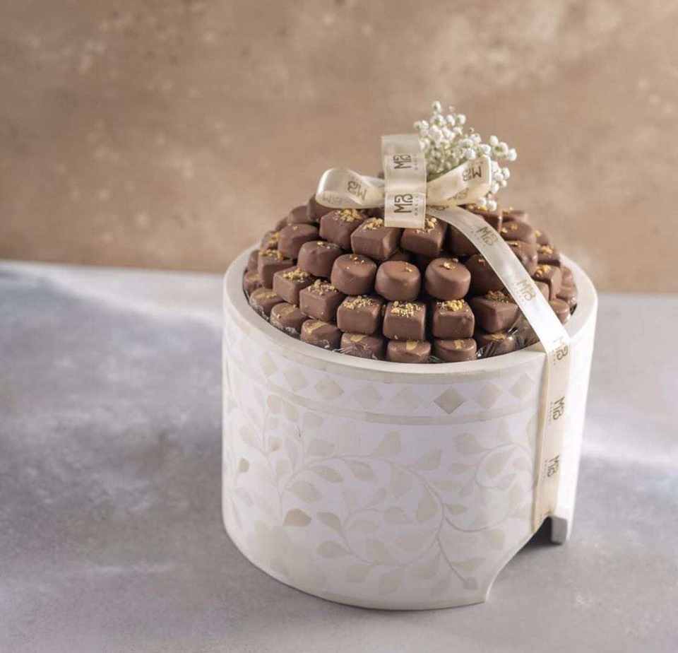 Exhibidor de Pasteles Redondo de Nácar y Hueso Opulento, Servidor de Lujo Hecho a Mano para Eid Mubarak, Fiestas de Ramadán y Decoración Festiva del Hogar